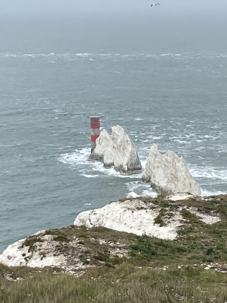 We walked back along the coastal path and it started to rain just as we were returning to the bus terminus at the Alum Bay tourist attraction. Although we would normally not have darkened its doors we were grateful to shelter in the cafe and have a hot drink as the rain hammered down.