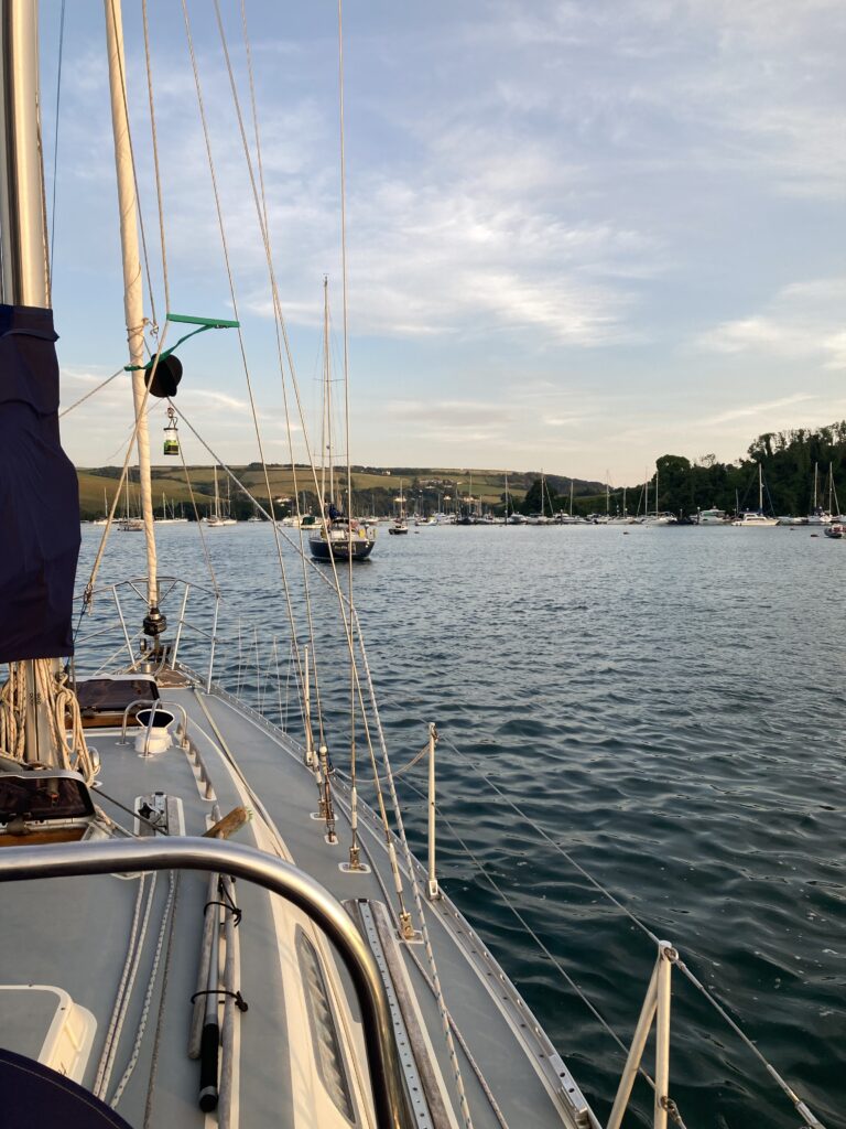 Eventually the tide changed and with a bit of breeze we made it to Salcombe at low tide. Carefully navigated past the bar and decided to anchor upstream as it was very busy in the main mooring area and we would have had to raft up on a buoy against another boat. Anchored and were immediately pounced on by the harbour staff to pay our harbour fees! Fair enough. Tidied up and a nice supper after a good sailing day.