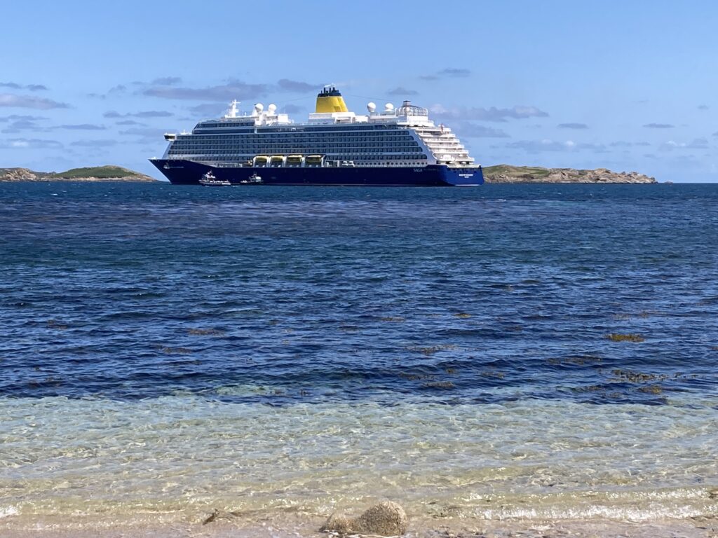 Then as we rounded the top of St Mary’s what did we see but another cruise ship. This time a Saga ship so nothing to do with Richard!!! Anne not impressed, but hopefully it helps the island economy.