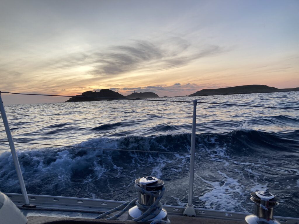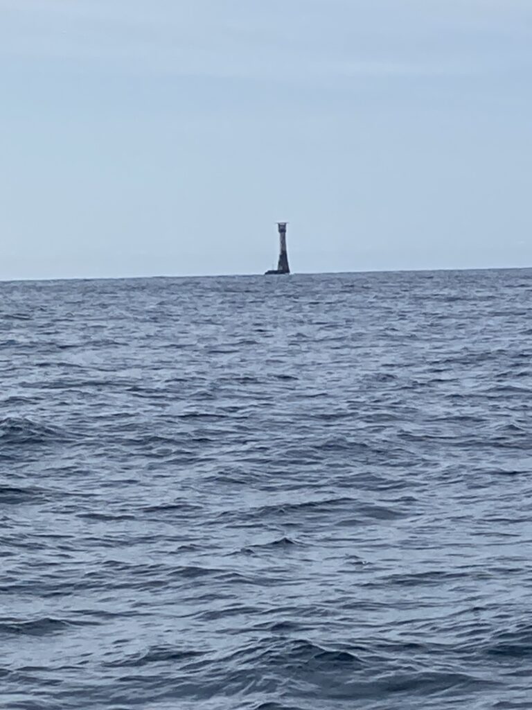 What little wind there was came from behind us and with a quartering sea we made reasonable progress. It was just a bit boring so we kept watch one hour on, one hour off, and this helped pass the time. Passed the Wolf Rock lighthouse and arrived at the Lizard as we had planned, even a little early, which meant we carried the favourable tide all the way to the Manacles, which was a bonus.