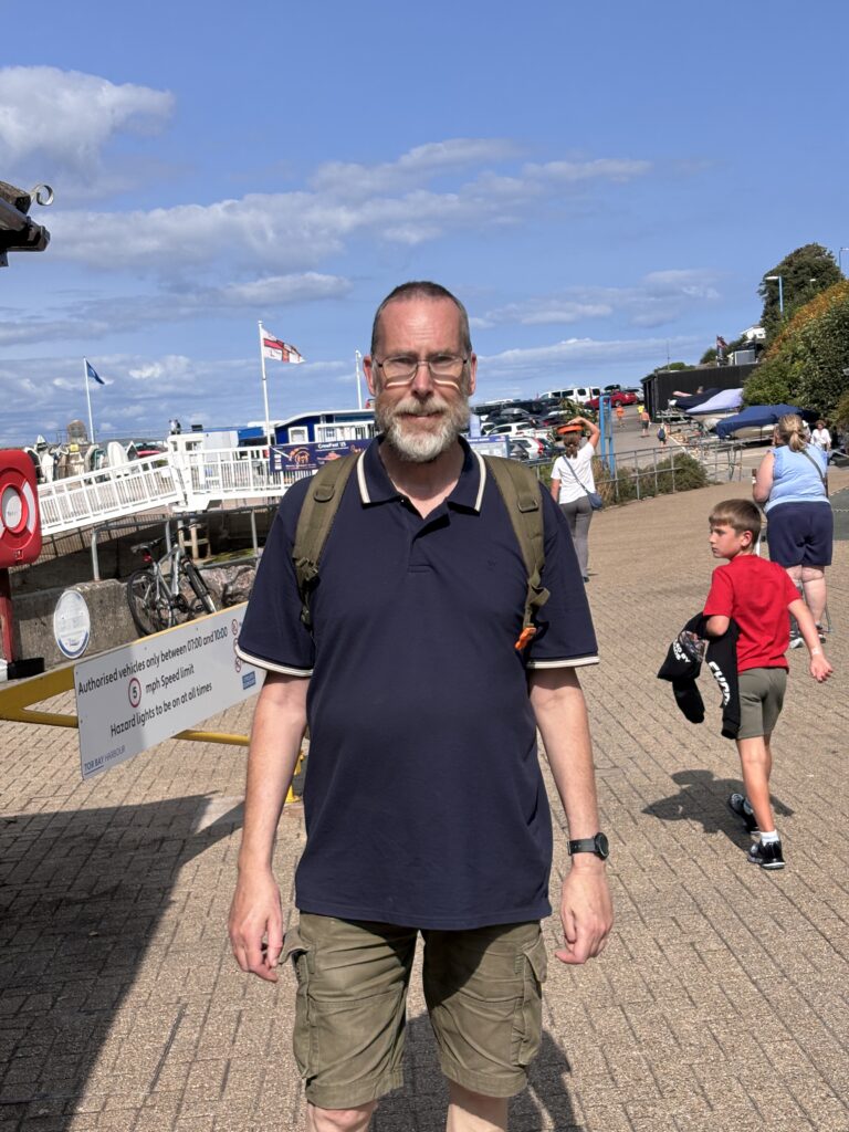This day was set aside to meet up with Anne’s brother Pete. Thursday is his day off from his work at the YMCA in Exeter but we didn’t expect him to about midday as he had other things to do in the morning. So after a bit of shopping we had a coffee in town and he soon called to say he was on his way. We met him on his way to us from parking his car and had a real surprise to find he had grown a beard. We had a nice lunch onboard Harvard and then whilst Anne and Pete walked out to Berry Head, Richard bought some more engine oil, checked over the engine and prepared Harvard for a long passage back towards the Solent. More about this in the next post.